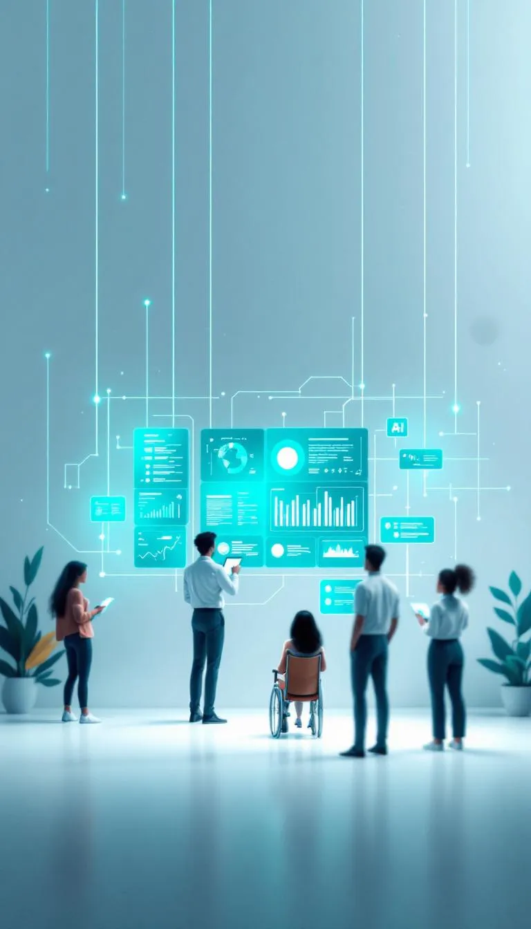 Illustration showing AI-powered tools helping NDIS providers automate reporting, gain insights, and streamline operations for better service delivery